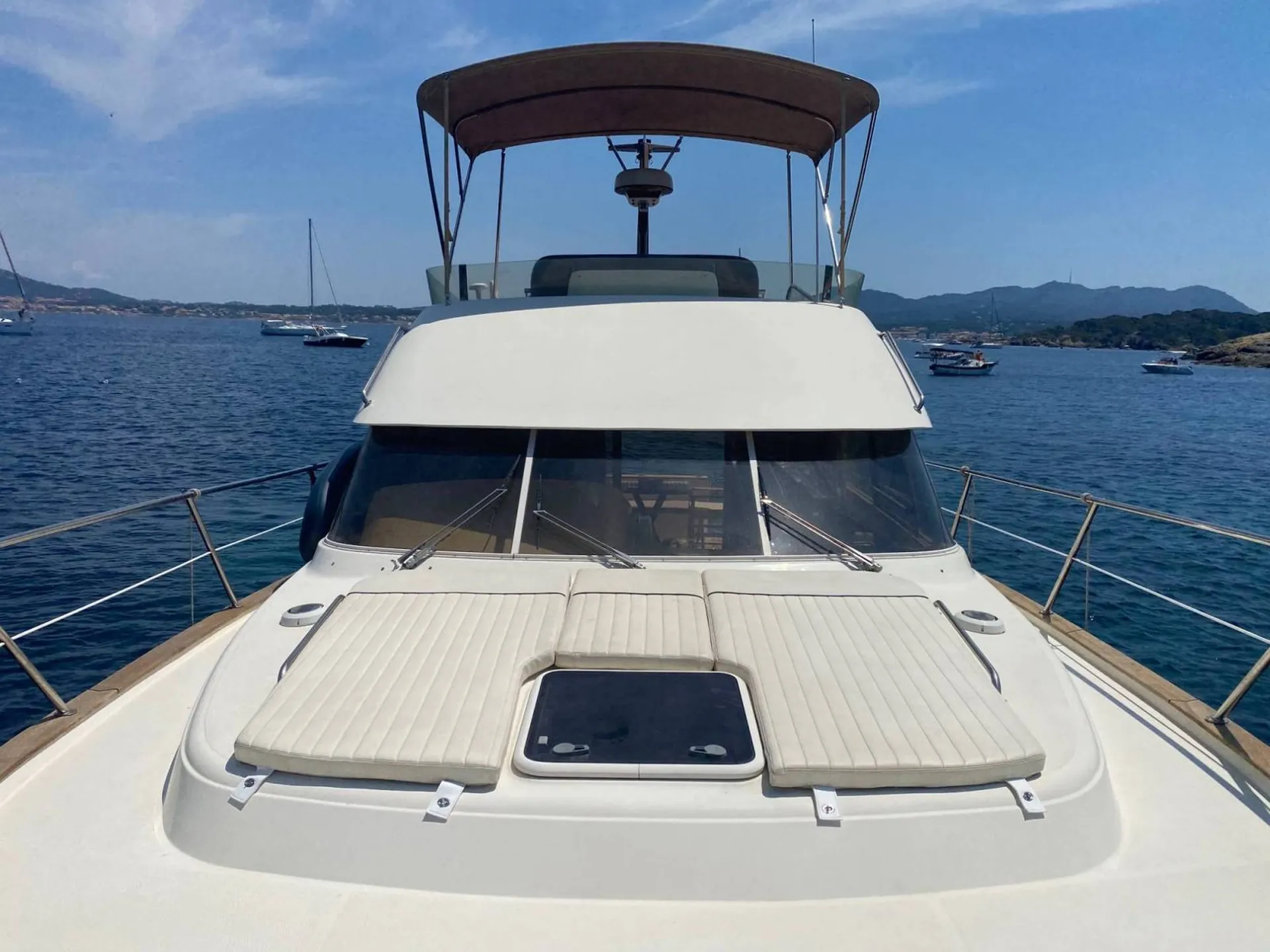 Sunshade, sunbathing, shower, fridge, snorkeling equipment (mask and snorkel), swim ladders, rear beach, paddle and even hifi Bose sound system.